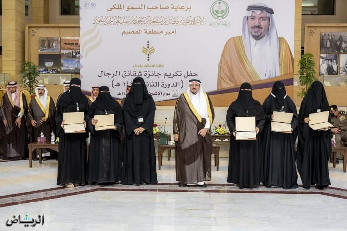 سمو أمير القصيم يرعى حفل تكريم 20 فائزة بجائزة شقائق الرجال في دورتها الثانية بقاعة التأسيس بمقر ديوان الإمارة.